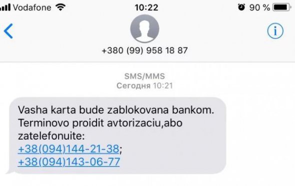 Шахрайські розсилки здійснювалися за допомогою SMS-повідомлень абонентам одного з українських операторів. У тексті повідомлень шахраї пропонують зателефонувати за невідомим номером, щоб розблокувати карту. У результаті виманюють в користувачів персональні дані, повідомила прес-служба ПриватБанку, - інформує Gazeta.ua.