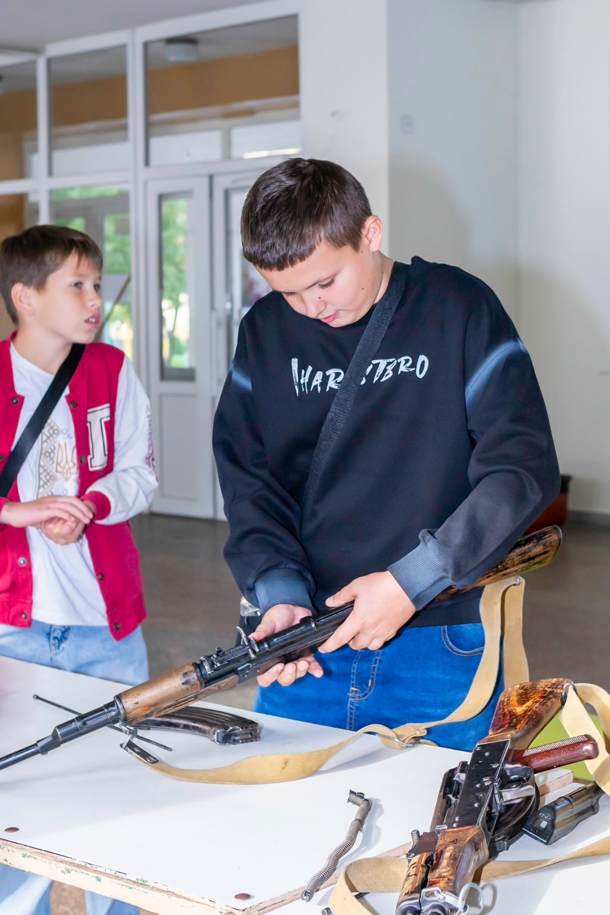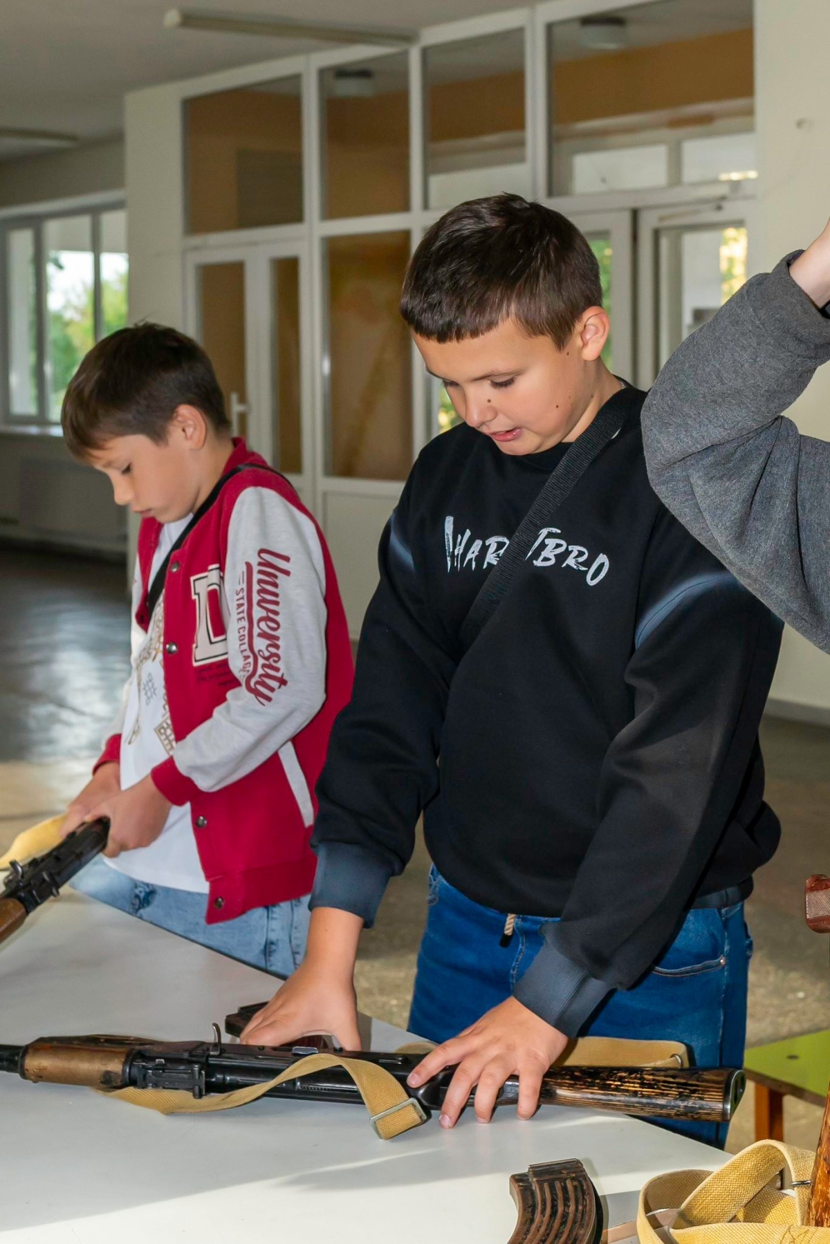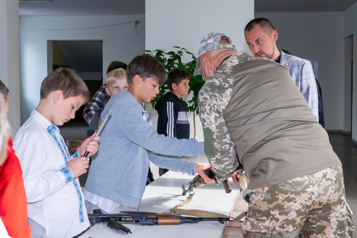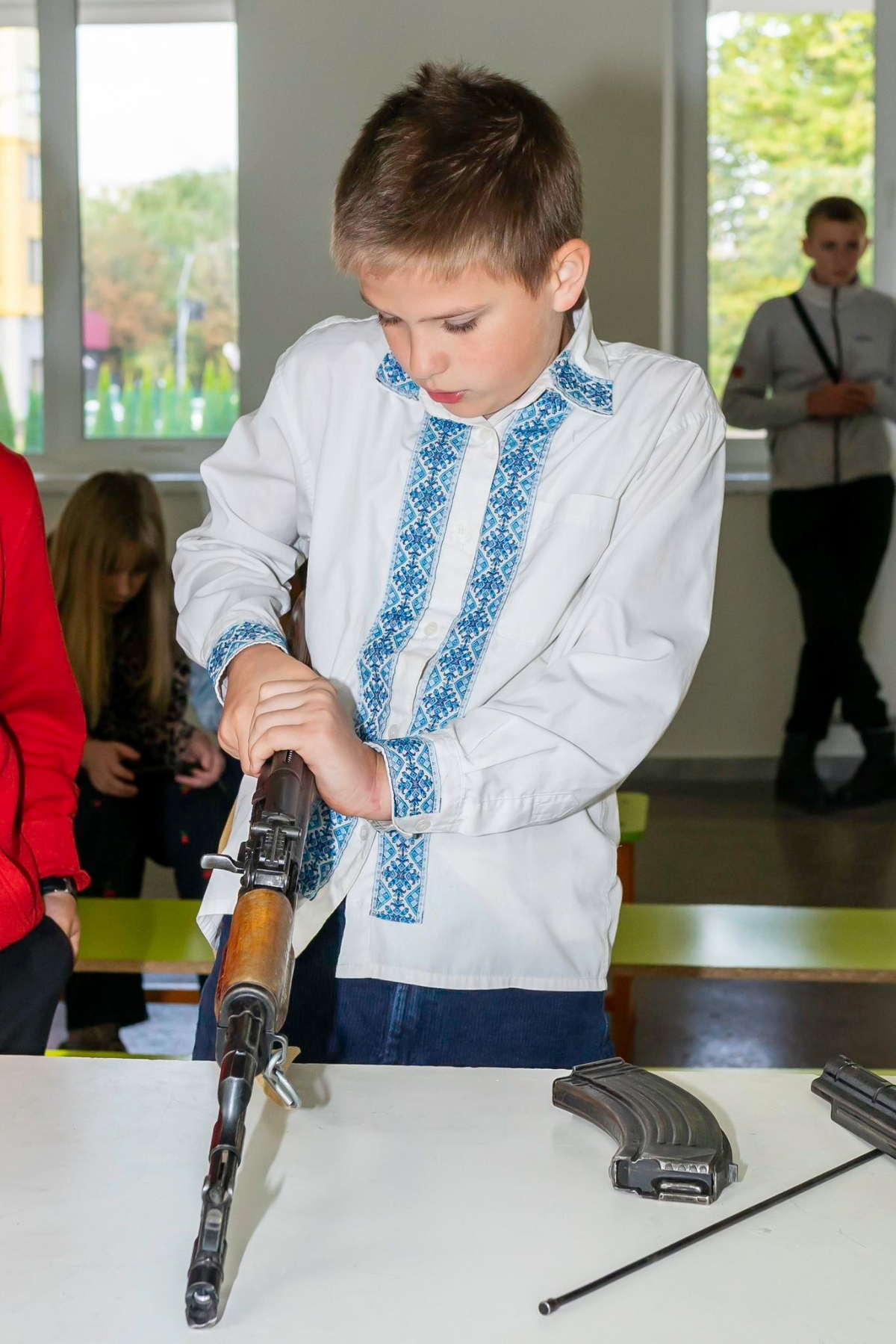Вчитель фізичного виховання, керівник гуртка «Незламні» Літвіцький Василь Григорович провів для учнів майстер-клас зі зброї. Діти мали змогу спробувати свої сили в розбиранні та складанні, дізнатися більше про військову справу.