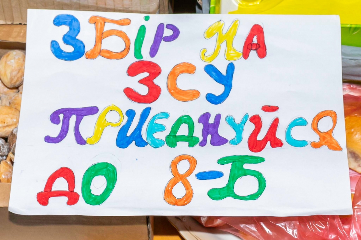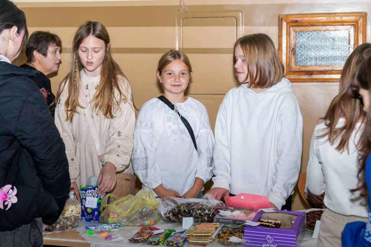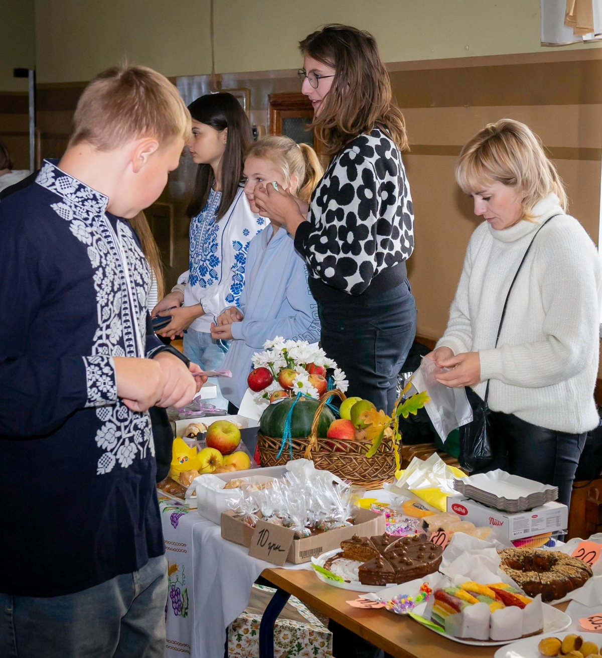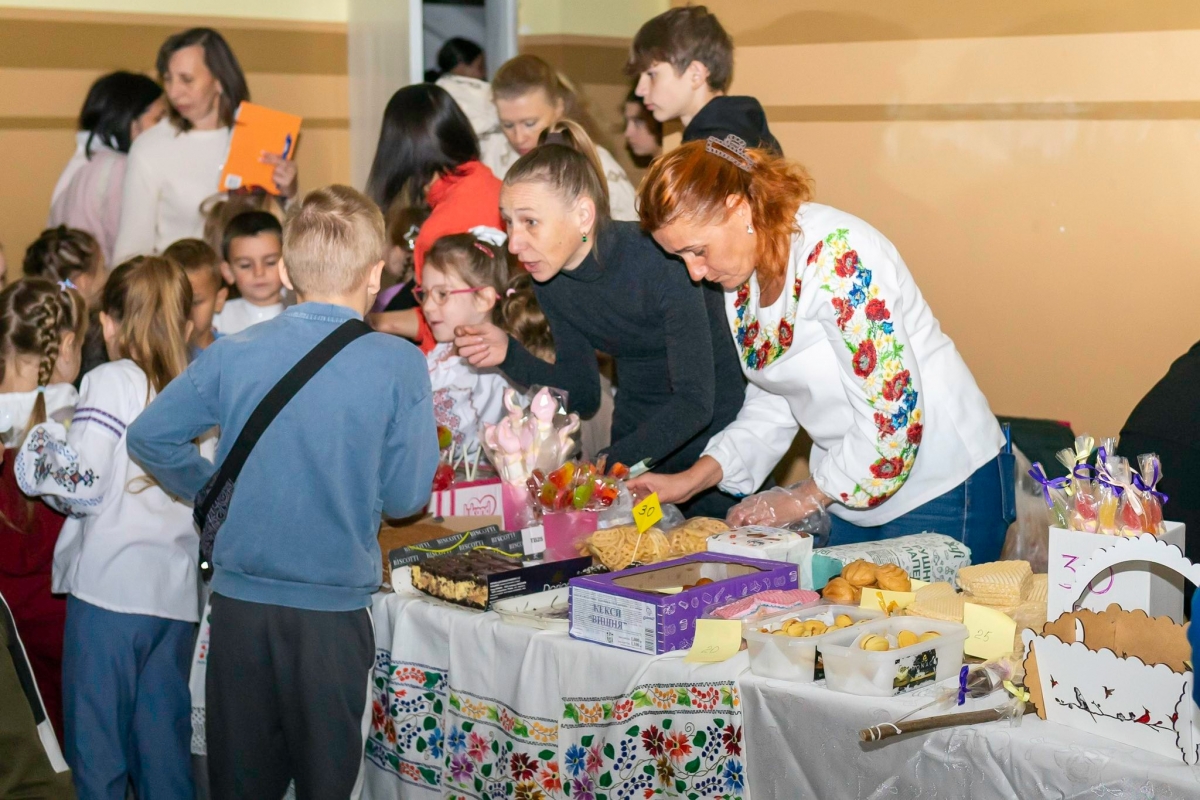 Учні разом із батьками та вчителями провели волонтерський ярмарок, на якому продавали різні смаколики, випічку та інші вироби ручної роботи. Усі зібрані кошти будуть передані на підтримку військових Збройних сил України.
