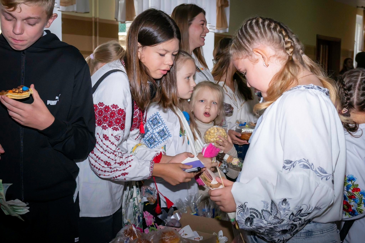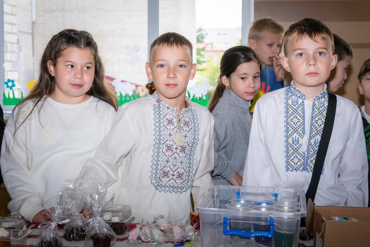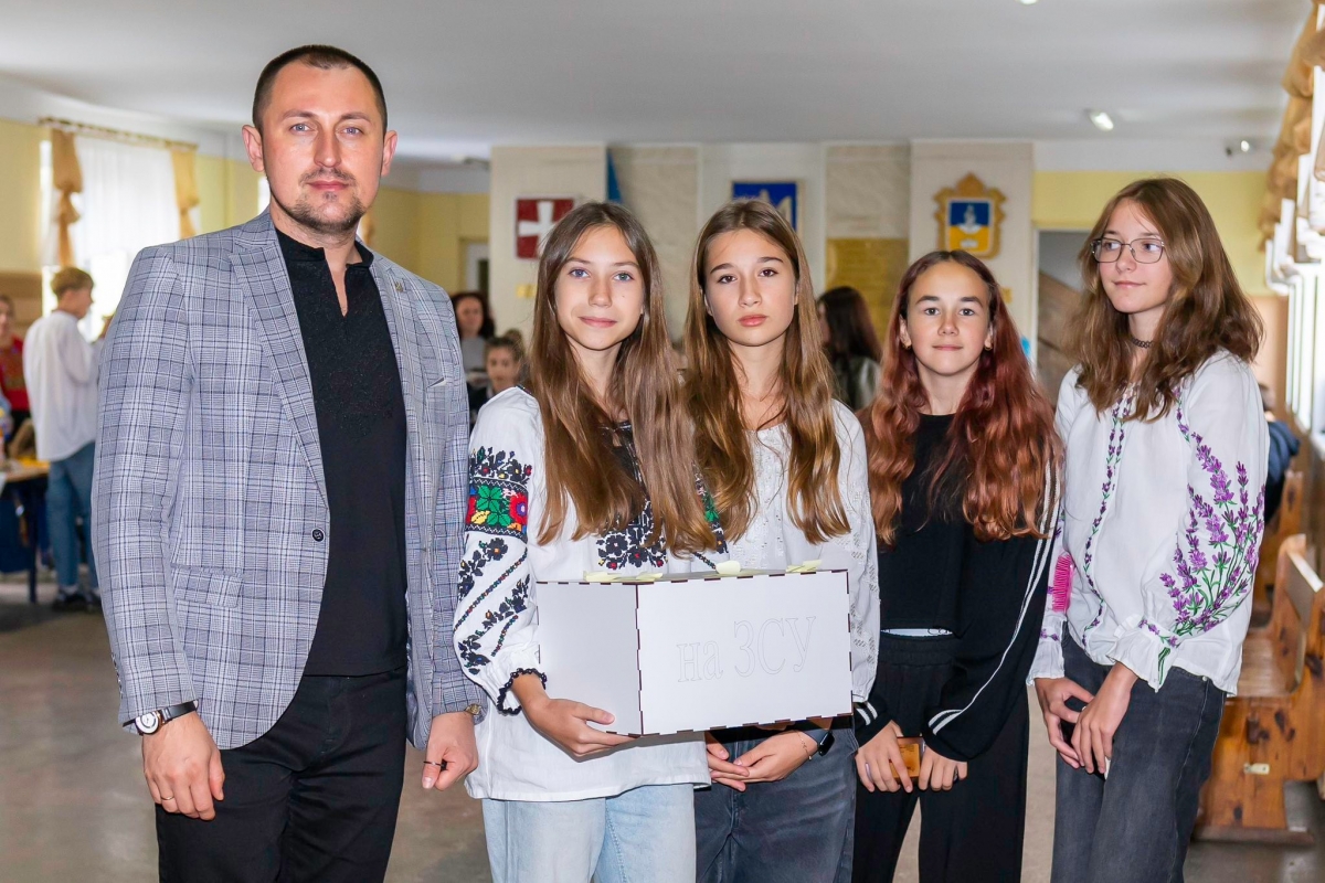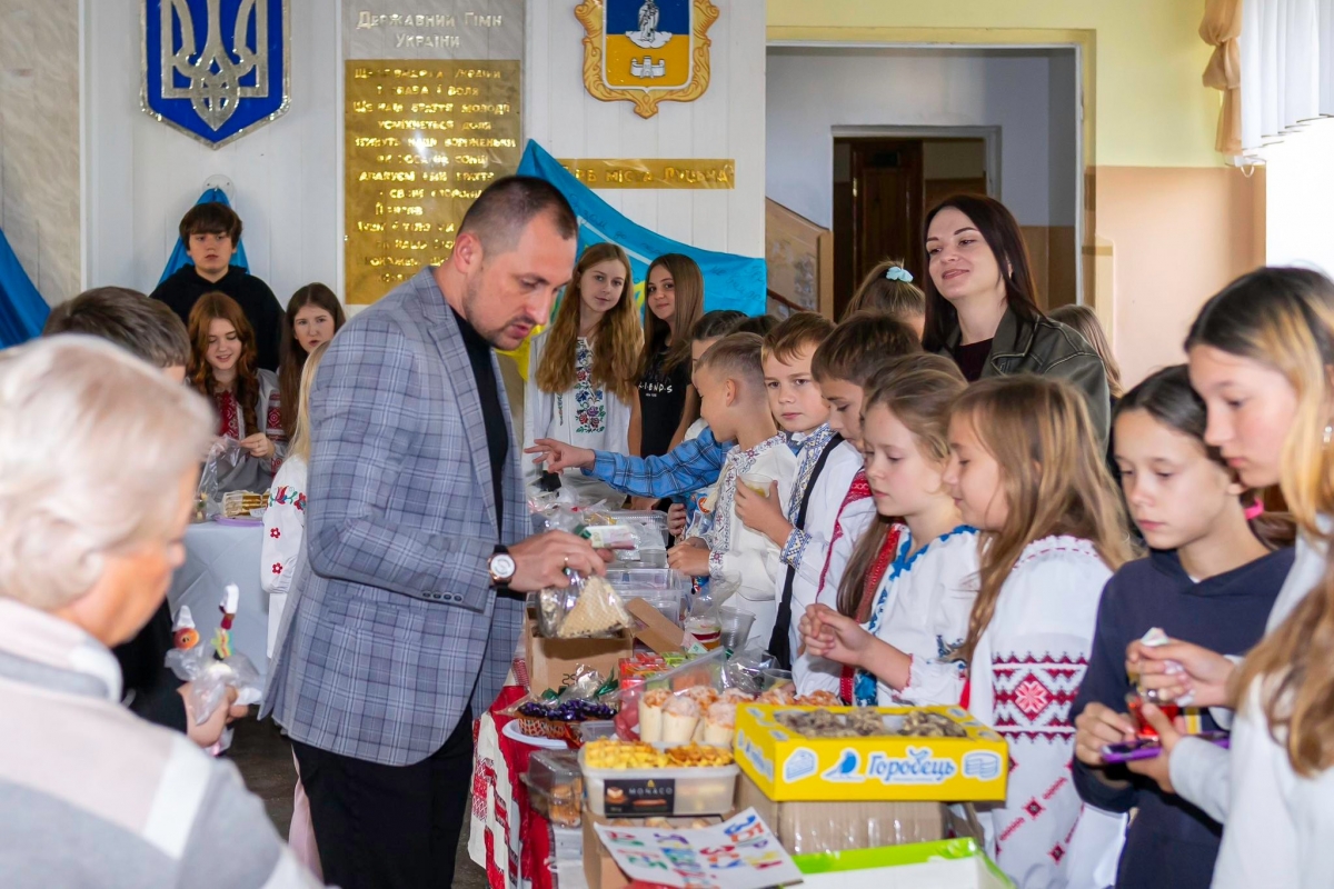 Учні разом із батьками та вчителями провели волонтерський ярмарок, на якому продавали різні смаколики, випічку та інші вироби ручної роботи. Усі зібрані кошти будуть передані на підтримку військових Збройних сил України.