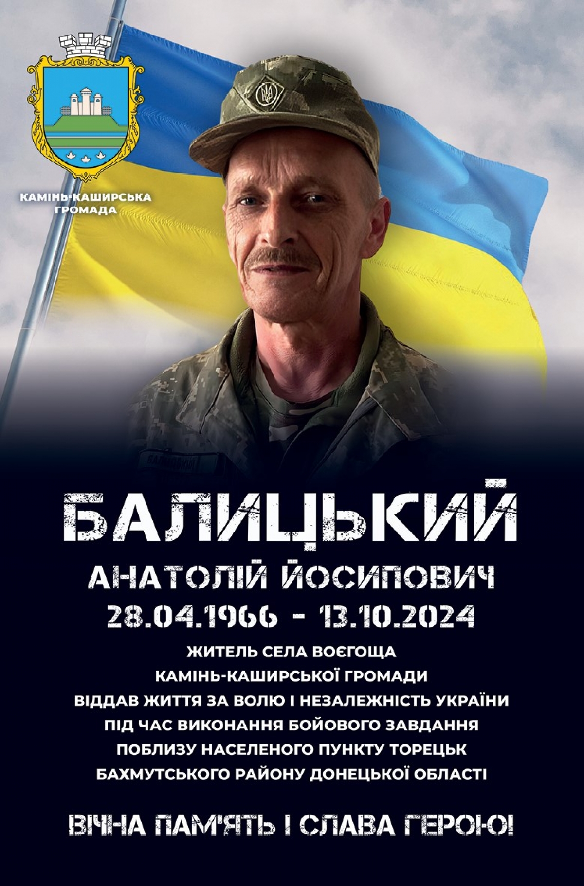 Довелося Анатолію доглядати батька до смерті, бо сестер доля порозкидала по всіх усюдах. Через два дні після похорону пішов в АТО. Воював у 2015-16 роках. Після початку повномасштабного вторгнення старший сержант Балицький Анатолій зібрав рюкзак і пішов у військкомат, щоб захищати Батьківщину. Спочатку у складі 100 бригади був у лісах Волині : будували фортифікаційні споруди, стерегли кордон. З березня 2023 року нищив ворога на сході нашої країни. Серед побратимів вирізнявся високим почуттям власної гідності та поваги до людей. Він дуже любив життя, складав плани на майбутнє…