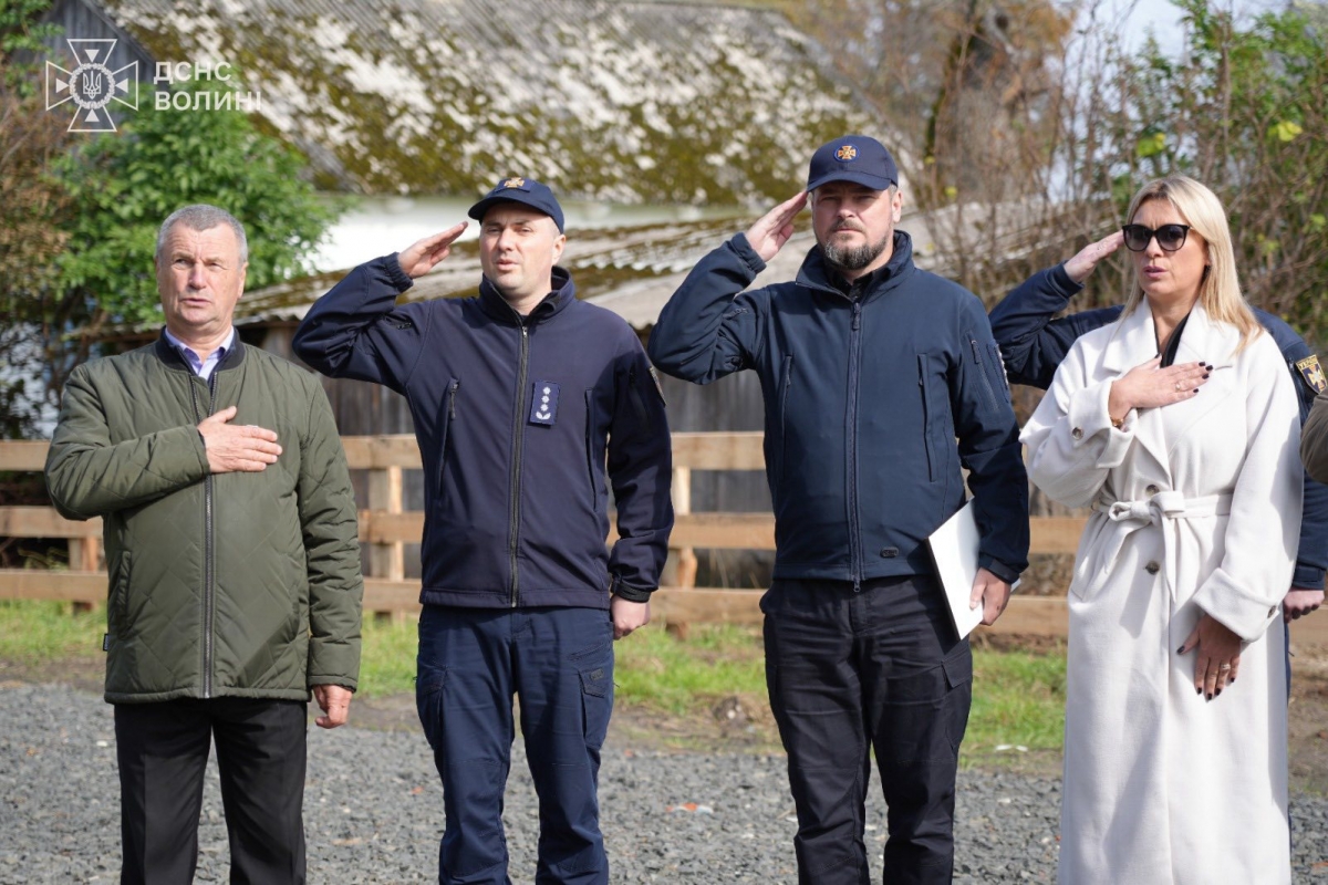 На заході були присутні начальник ДСНС Волині Мирослав Дем’янчук, голова Луцької РВА Анатолій Костик та голова районної ради Тетяна Павлова-Багрійчук, представники місцевої влади, мешканці громади, юні рятувальники.