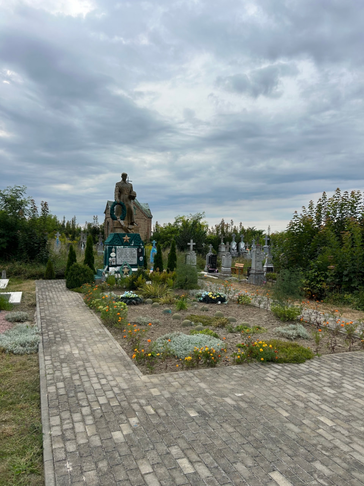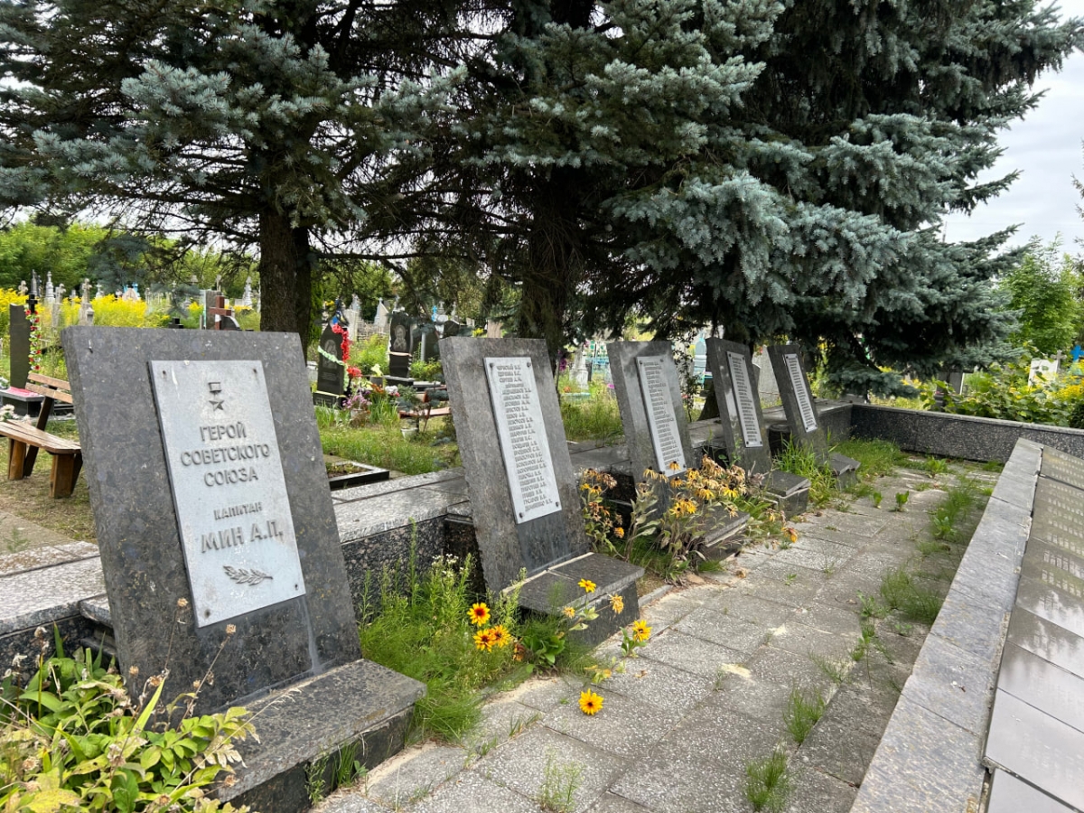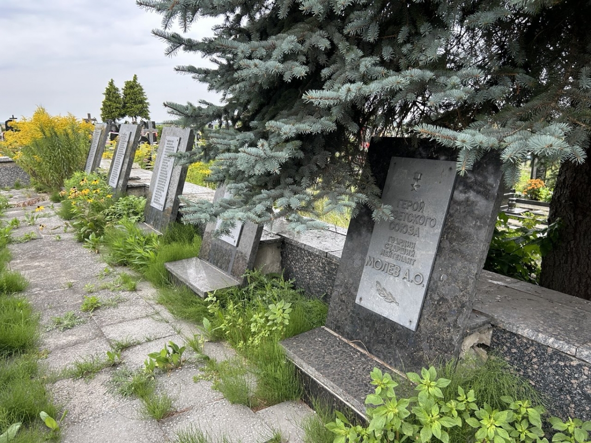Навколо монумента територія «всипана» прізвищами совєтських солдатів, а деякі з них навіть відзначені «почесним званням» - «ГЕРОЙ СОВЕТСКОГО СОЮЗА», такі як: Молев А.О. та Мин А.П.