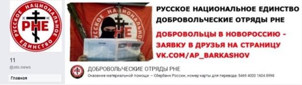 Так, за адресою facebook.com/ato.news була розміщена реклама так званої Російської національної єдності, організація вербувала "добровольців у Новоросію".