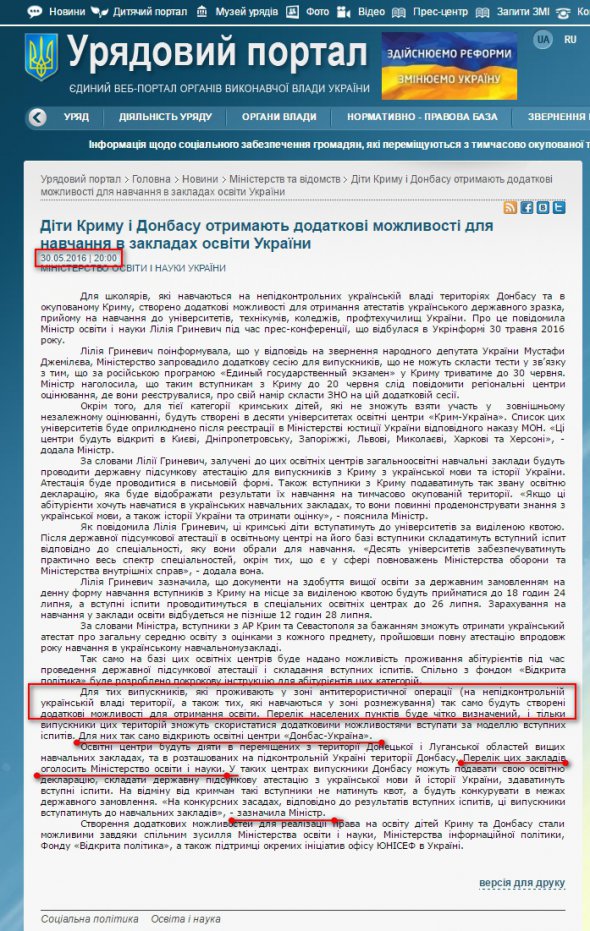 Результат: центри почали працювати 5 липня 2016 року. Діють все-таки в переміщених з окупованої території вузах. Перелік вузів розміщений на сайті Міністерства освіти і науки України.