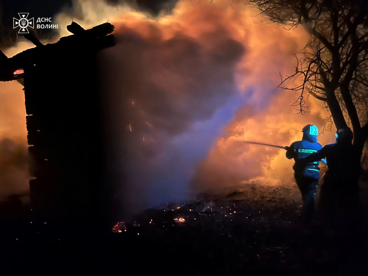 У с. Бубнів Володимирського району горівся цегляний хлів. Вогонь знищив покрівлю, пошкодив частину перекриття та господарський інвентар. Попередня причина — коротке замикання електромережі. На місці події працювали пожежно-рятувальні підрозділи з Локач та Горохова, а також місцева пожежна команда с. Привітне.