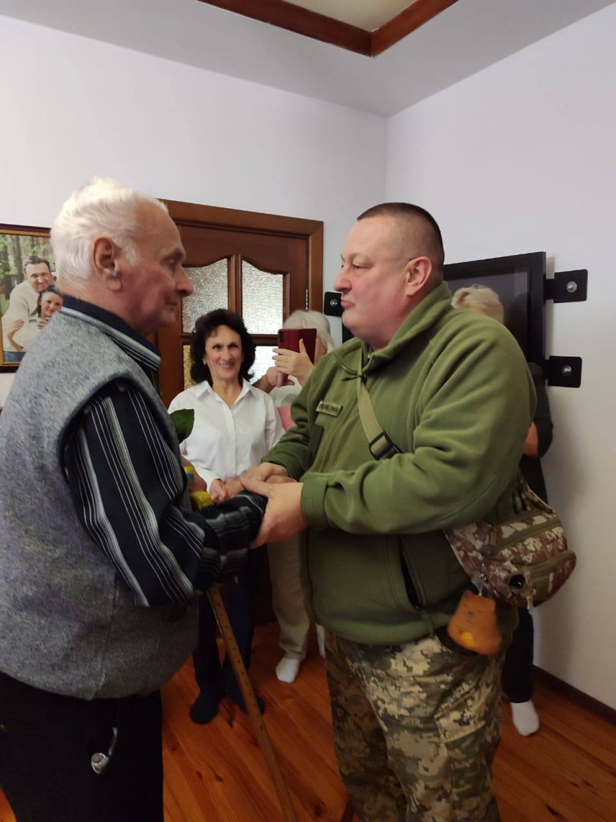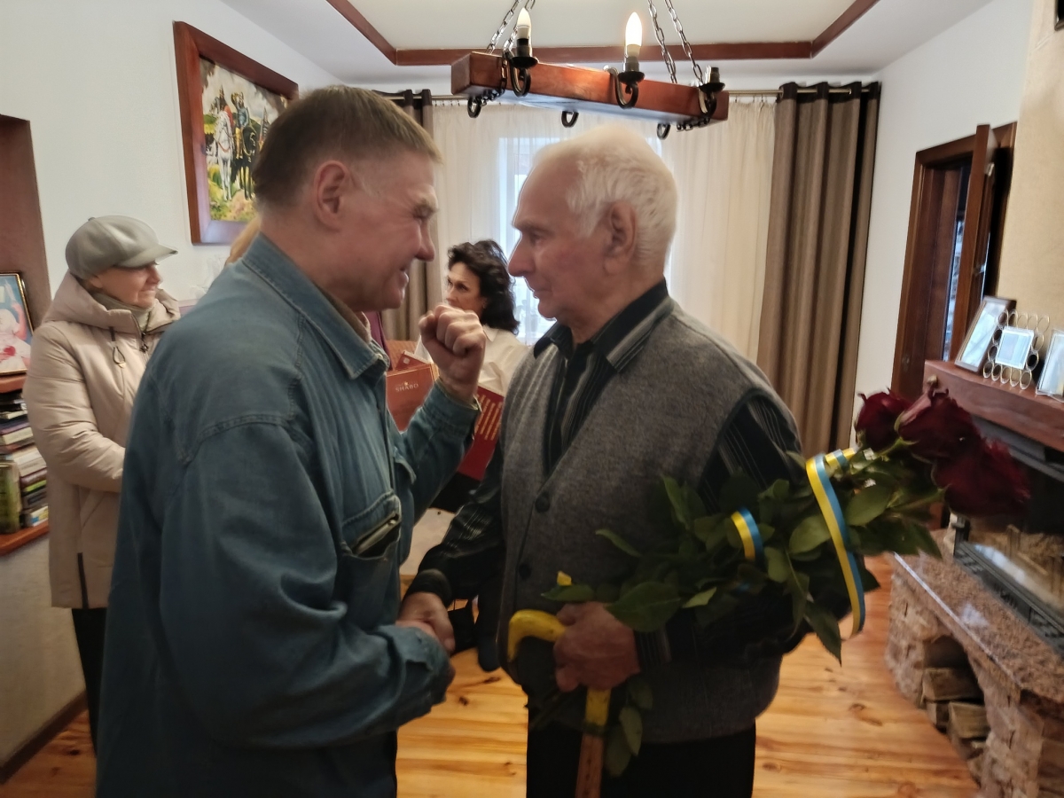 За дорученням голови спілки Валерія Семенюка, спільно з іншими її активістами привітали ювіляра зі святом, передали вітання як від націоналістичного товариства, так і ветеранів теперішньої московсько-української війни.