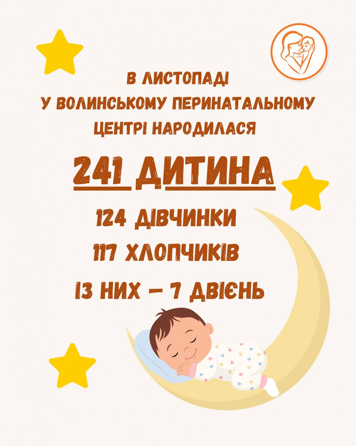 241 малюк з'явився на світ у Волинському перинатальному центрі в листопаді: 124 дівчинки та 117 хлопчиків!