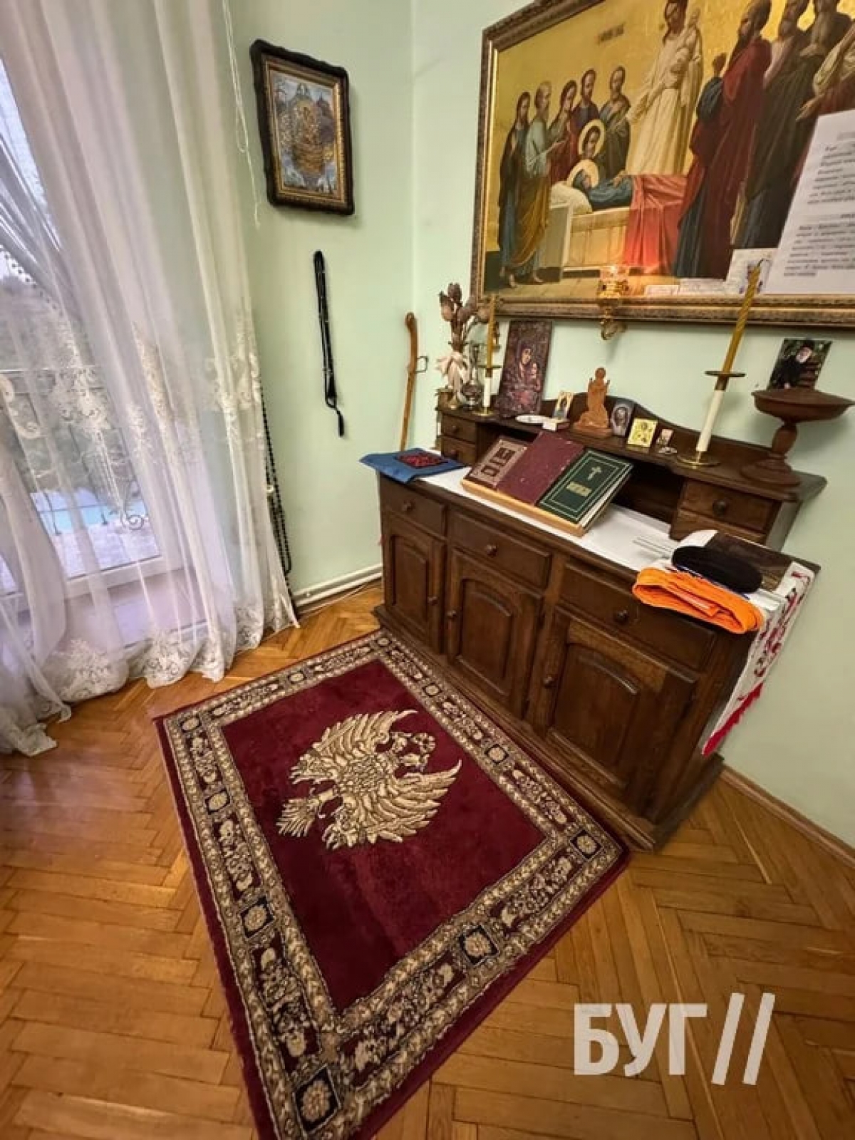 Під час опису майна в соборі журналісти зафіксували неоднозначні знахідки, зокрема ікону Івана Кронштадського – російського святого,який був членом праворадикальної націоналістичної організації «Союз русского народа», обстоював монархічні і ксенофобські цінності, також зафіксовано килимок із зображенням двуголової істоти схожої на орла, зазначимо,що двуголовий орел зображений на гербі держави-окупанта.