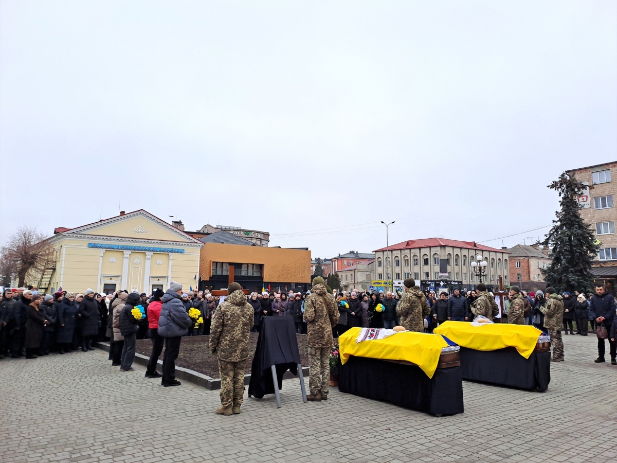 І знову на центральній площі Ковеля - дві домовини, вкриті синьо-жовтими прапорами. Ковель попрощався зі своїми Героями - Артемом Абрамчуком та Юрієм Гусаром.