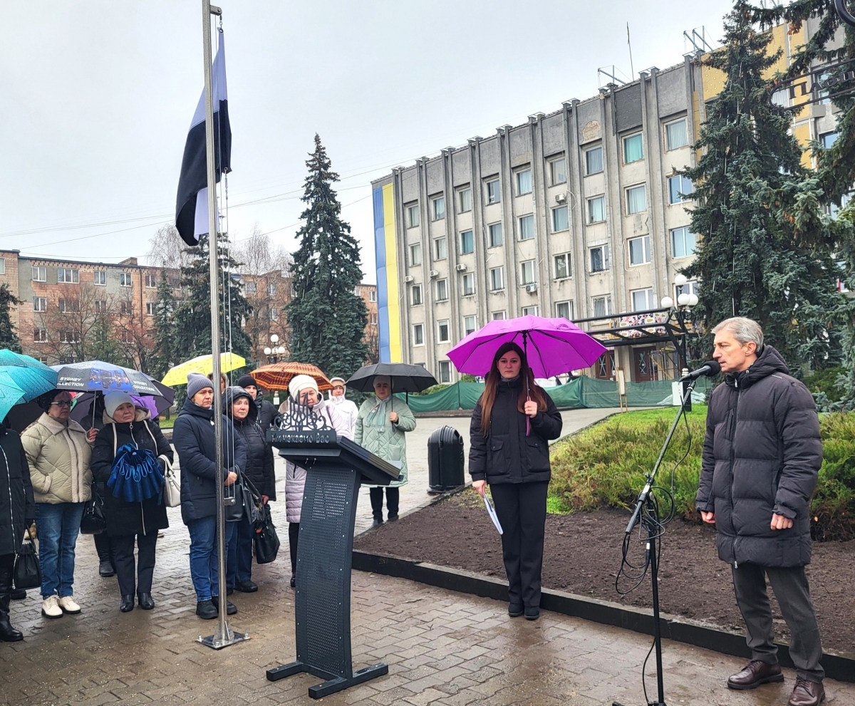 Поруч здіймається чорно-білий прапор Надії, який, як і сама інсталяція, нагадує про незламність і єдність нашої громади.