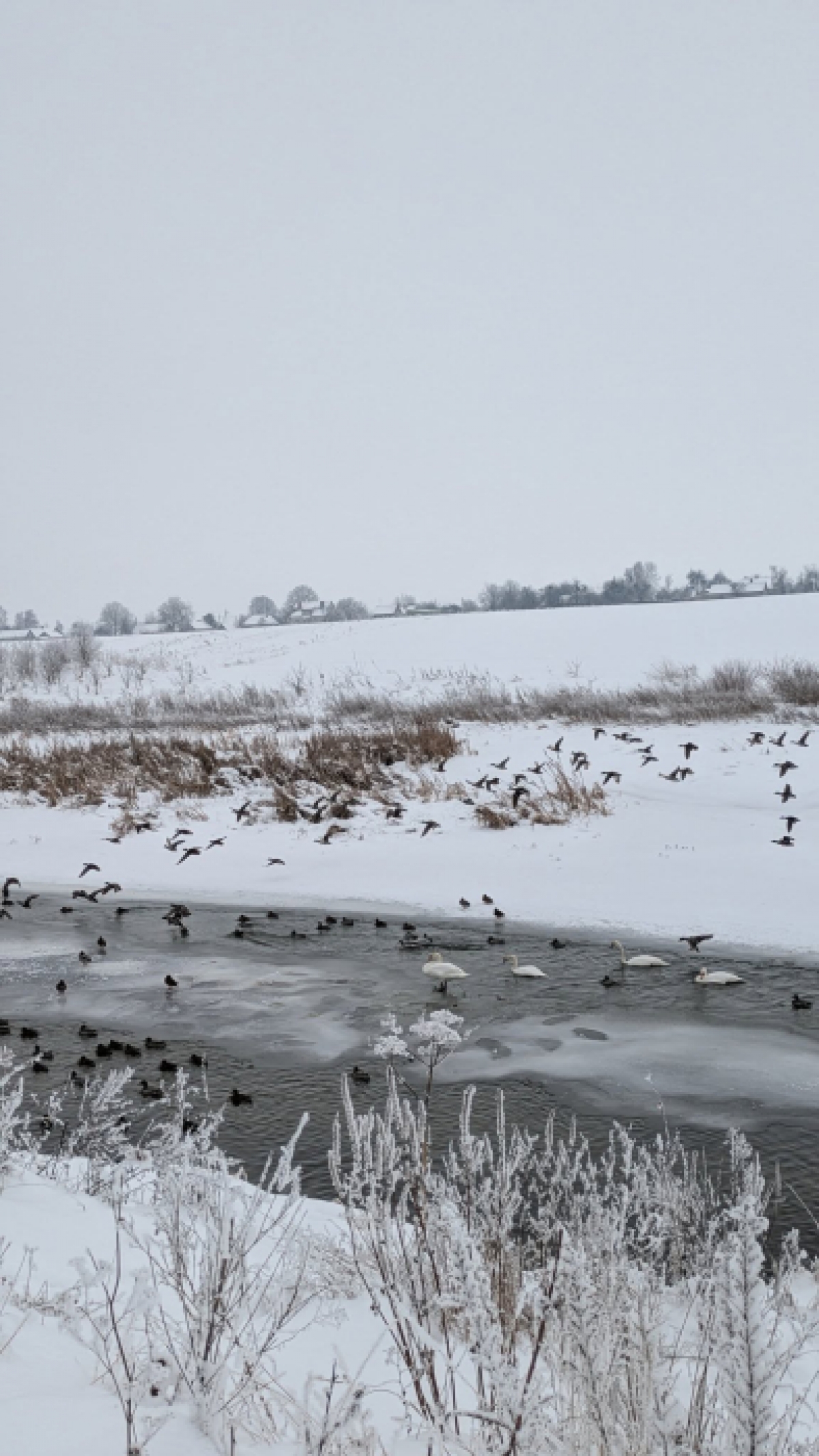 Жителька міста Леоніда Хільчук опублікувала у Facebook чарівну фотопідбірку: величні лебеді та численні дикі качки мирно плавають серед крижаних ділянок річки, оточені засніженими берегами та обмерзлими очеретами, - пише Район Володимир.