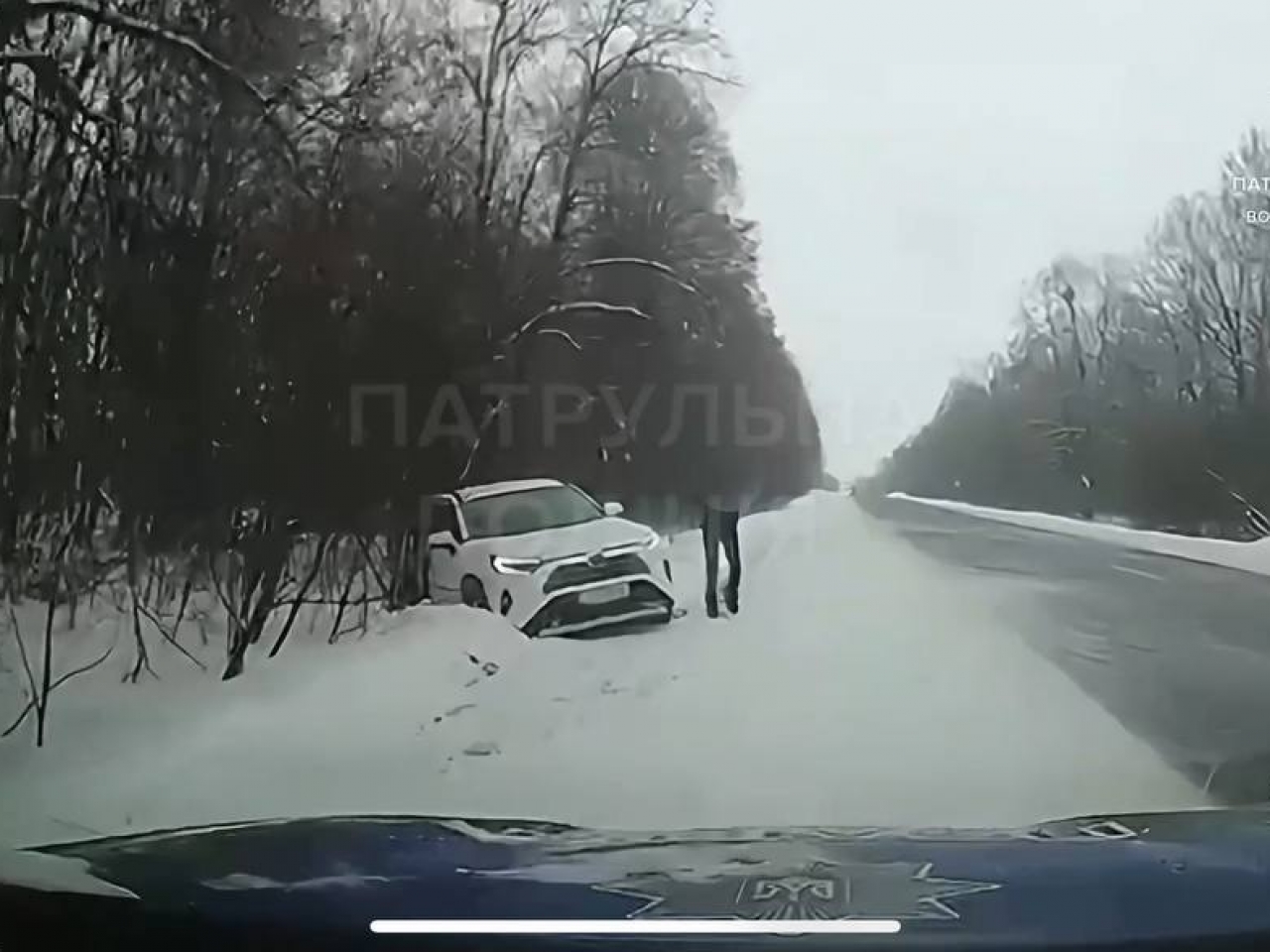 Патрульні зупинили інший транспортний засіб, аби витягнути авто з кювету, забезпечуючи при цьому регулювання дорожнього руху. Спільними зусиллями автівку вдалося повернути на проїзну частину.