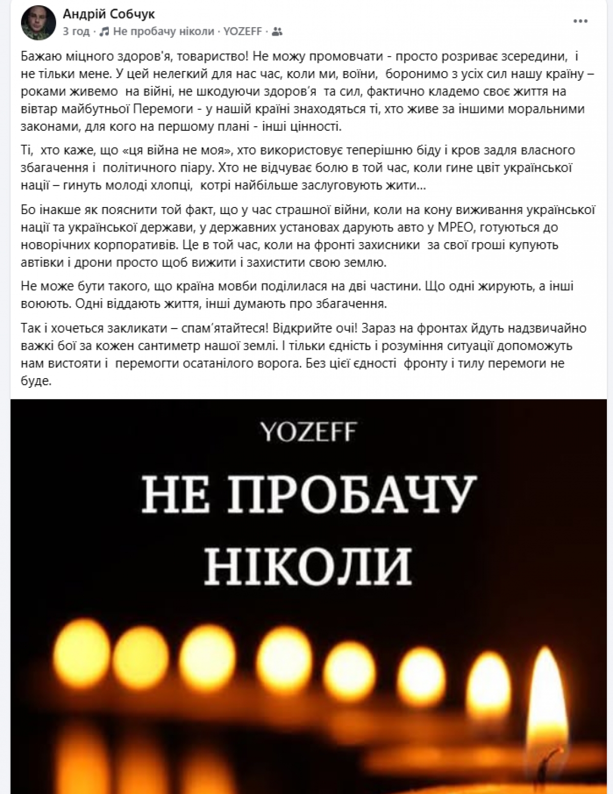 Не можу промовчати - просто розриває зсередини, - боєць Собчук розкритикував покупку чиновника Підгайцівської громади авто для МРЕО