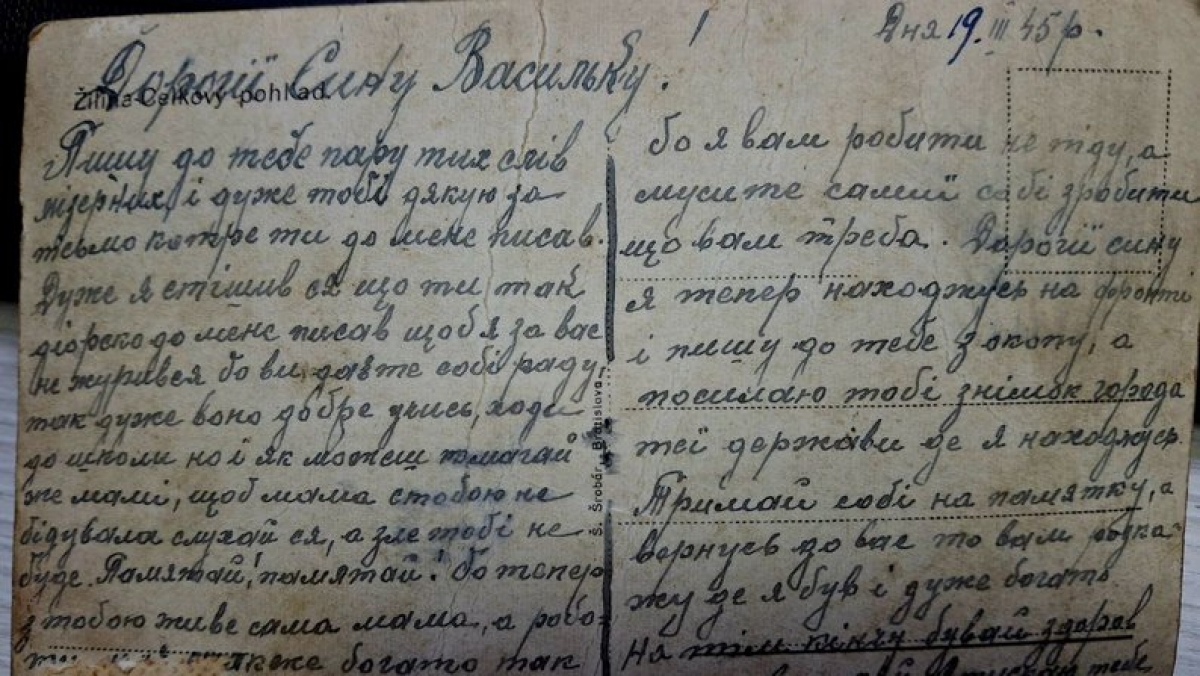 Ще однією унікальною знахідкою історик виділяє фотолистівку із німецьким містом. На протилежному боці зберігся лист від остарбайтера — чоловіка, якого вивезли у часи Другої світової війни на примусові роботи до Третього Рейху. Лист написаний у 1945 році.
