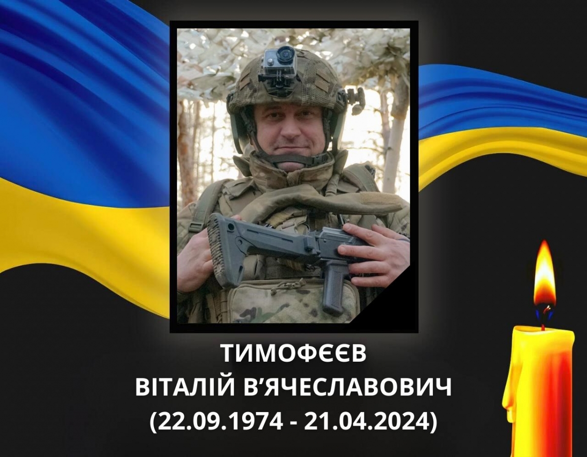 13 грудня проводжатимемо в останню земну дорогу заступника командира батальйону з артилерії 2-го механізованого батальйону військової частини А7028, майора Тимофєєва Віталія В’ячеславовича. Він загинув 21 квітня 2024 року, виконуючи бойове завдання в районі н.п. Очеретине Покровського району Донеччини.