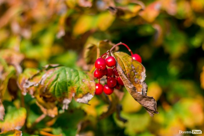 Осінь непомітно підкрадалася до луцьких парків, садів та скверів, а сьогодні, 1 вересня, повноцінно вступила в свої права. Кущі калини рум'яніють не лише багряними кетягами, а й насичено-червоними листками.
