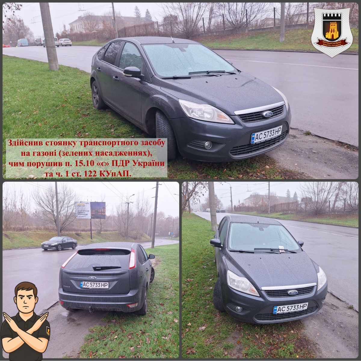 Під час інспектування вулиць міста інспектором з паркування департаменту муніципальної варти було зафіксовано чергове порушення за адресою вул. Архітектора Метельницького, 4, де водій припаркував автомобіль прямо на зеленій зоні.