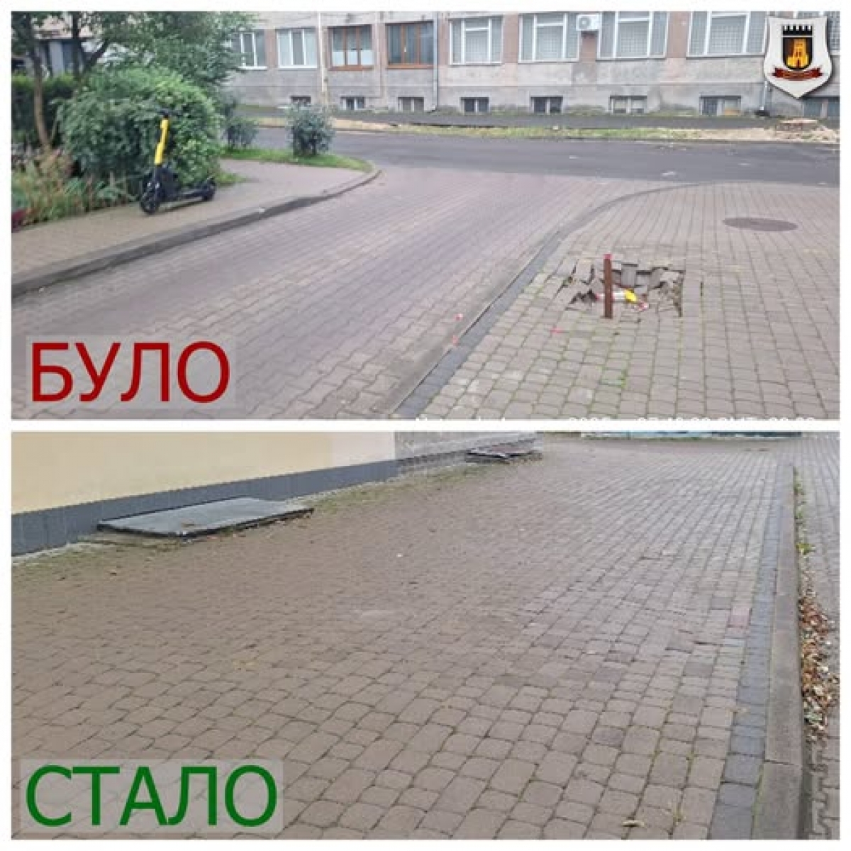 Під час розгляду звернення інспектор департаменту виявив просідання бруківки на тротуарі. Про даний факт було негайно повідомлено балансоутримувача інженерних мереж, що знаходяться на аварійній ділянці тротуару.
