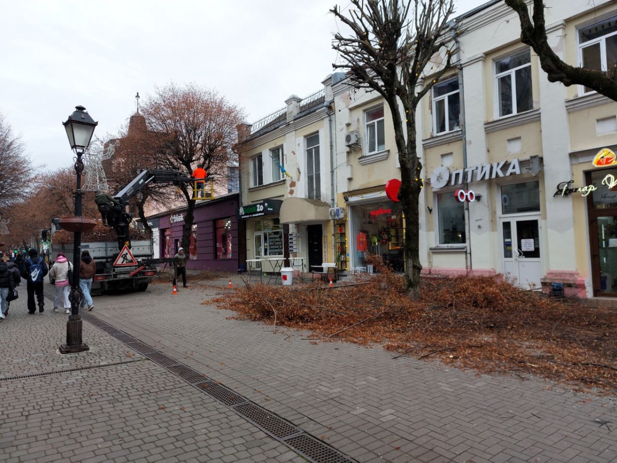 Зараз працівники зрізають крони дерев, які ростуть неподалік від ЦНАПу. Розпочали обрізку з перехрестя вулиць Сенаторки Левчанівської та Лесі Українки.