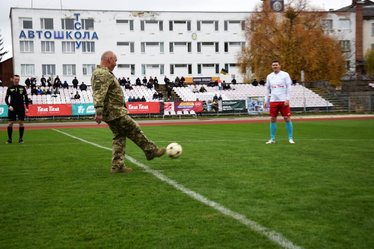 Справжнім символом незламності, який своїм ударом розпочав матч між командами, став прикордонник-Герой України Олег Пришневський.