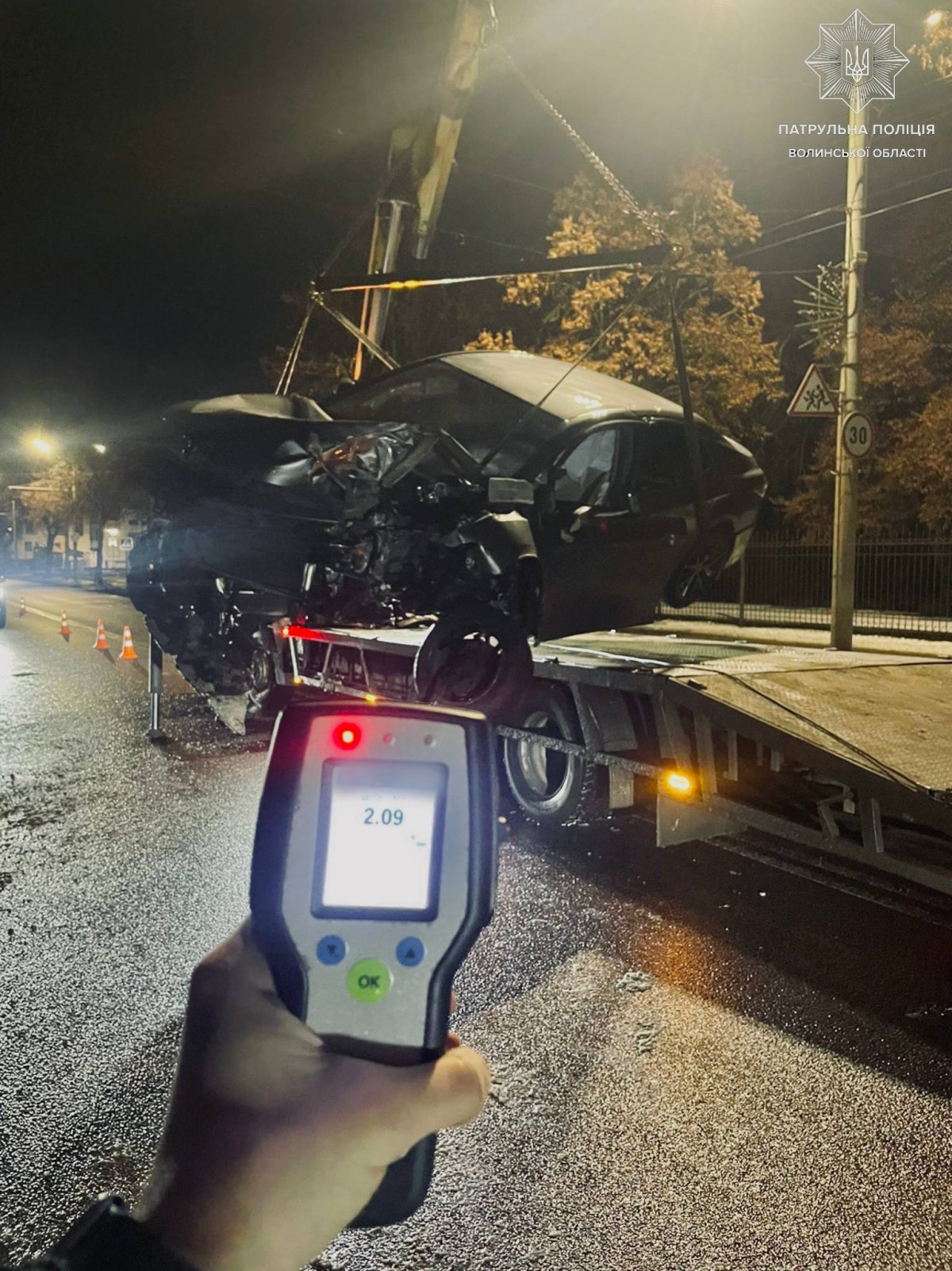 При спілкування з керманичем інспектори помітили у нього ознаки алкогольного сп’яніння та запропонували чоловіку пройти огляд за допомогою приладу Драгер. Результат — 2,09 проміле.