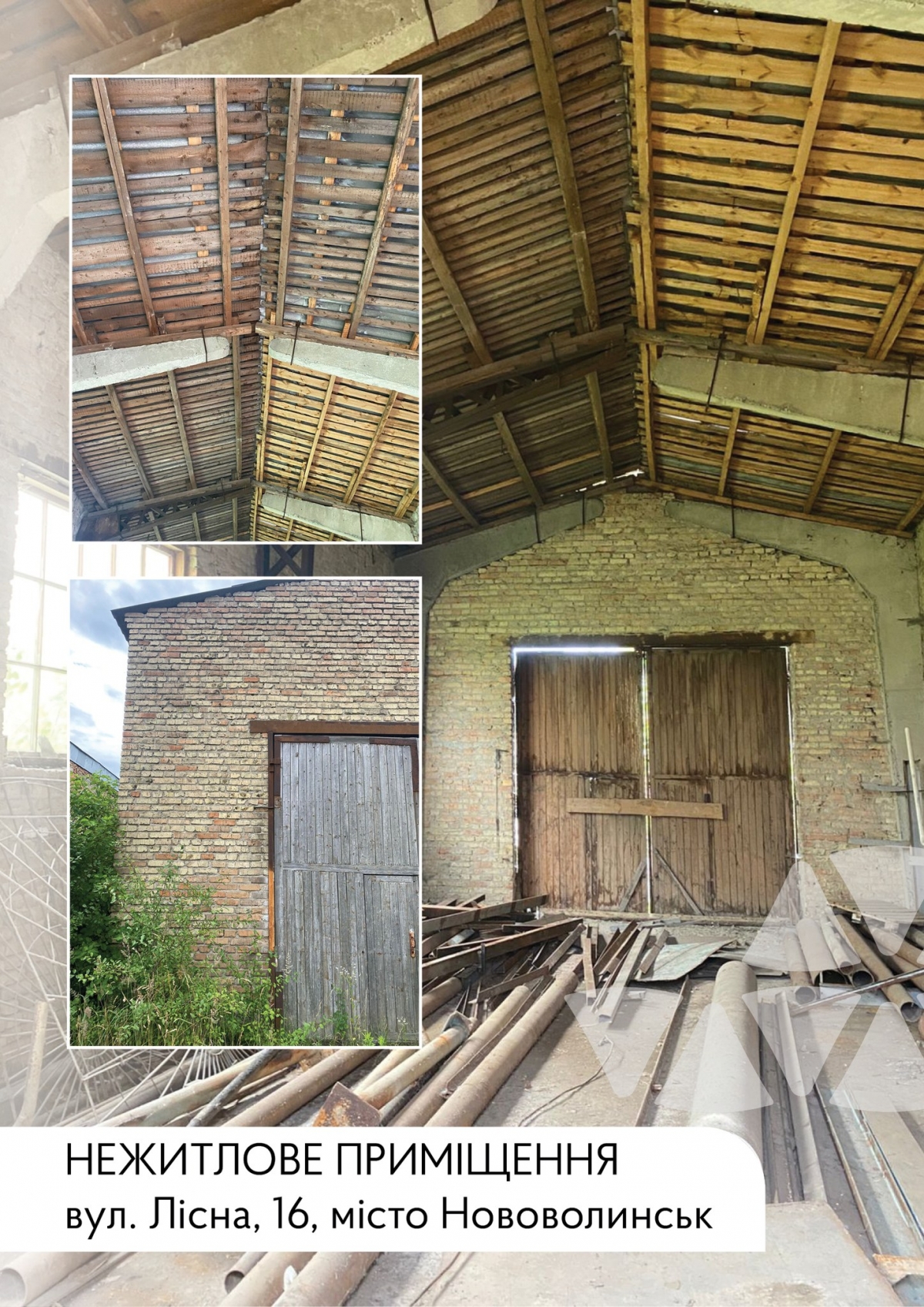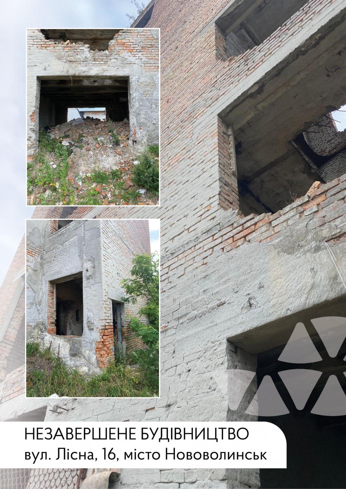 Перший лот — незавершене будівництво нежитлового приміщення ступенем готовності 43%, що розташоване за адресою: вул. Лісна, 16, м. Нововолинськ, Володимирський район, Волинська область. Початкова ціна об’єкта становить 599 843 гривні без ПДВ. Аукціон заплановано на 21 листопада 2025 року о 12:35. Унікальний код аукціону — SPE001-UA-20251031-16708.