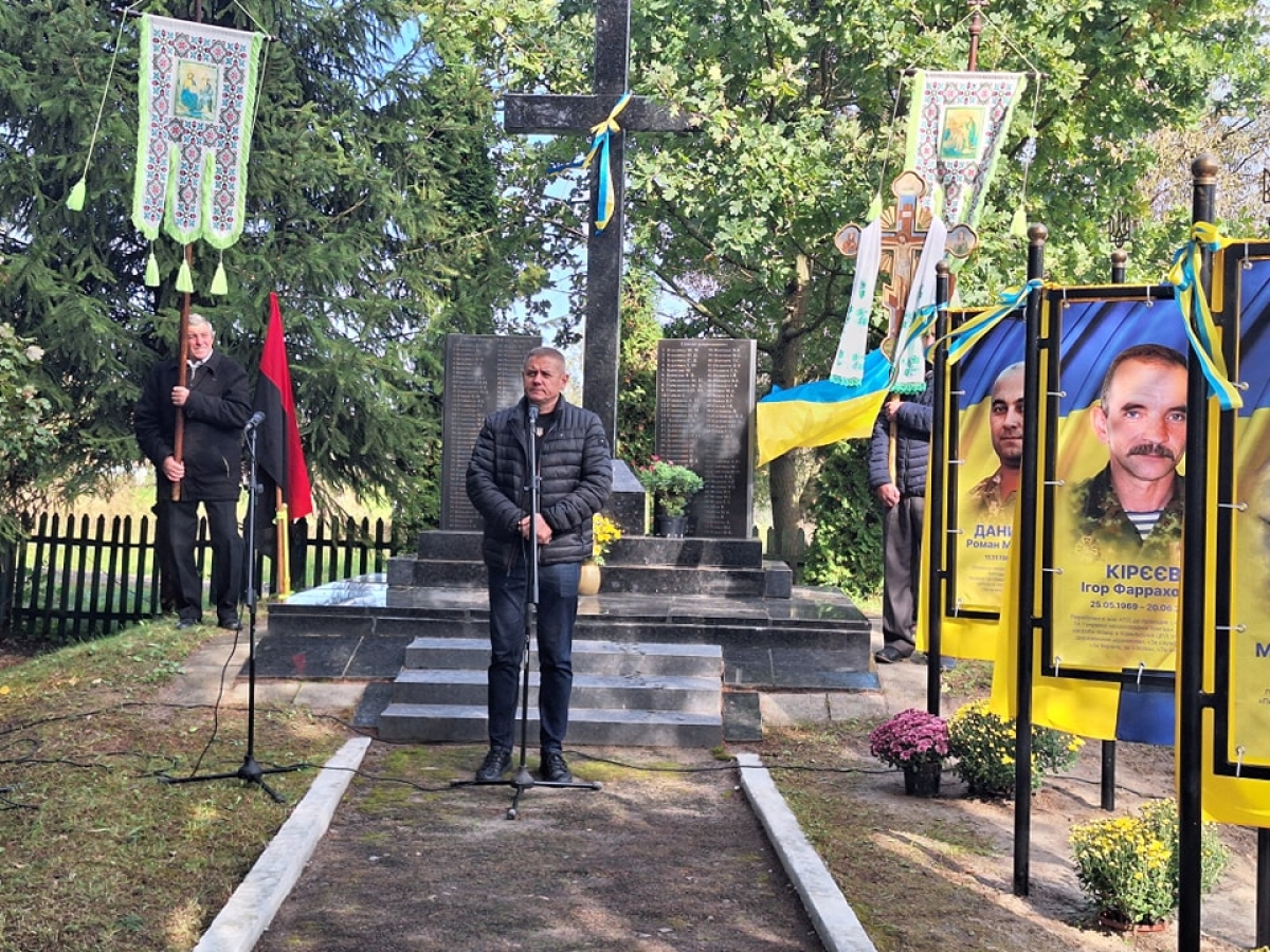 «На цьому місці має виховуватися не одне покоління українців. З того часу, як діти навчаться ходити, їх батьки повинні приводити їх сюди та розповідати про історію свого села, своєї родини, нашої України, щоб вони з раннього віку знали, якою ціною здобувалася українська незалежність. Ми маємо берегти пам'ять про наших загиблих захисників, описувати їхні історії життя та берегти їхню пам’ять вічно», - звернувся до присутніх Юрій Поліщук.