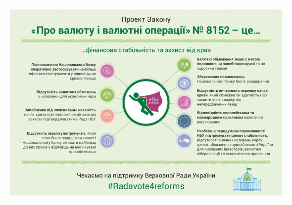 «Ухвалення закону "Про валюту та валютні операції" дасть "зелене світло" для швидкої і повномасштабної валютної лібералізації, на яку давно чекають бізнес та інвестори. Ми зможемо прибрати значну кількість хворобливих валютних обмежень. Так, бізнес і фізичні особи зможуть інвестувати за кордон без необхідності отримувати індивідуальні ліцензії», - казав про закон голова НБУ Яків Смолій.