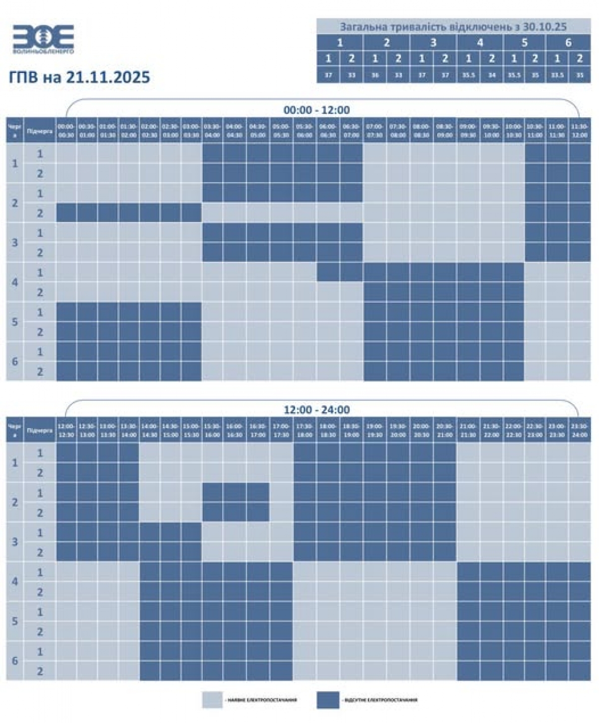 Час фактичного відключення та відновлення електропостачання може відрізнятися на 20–30 хвилин через технологічний процес перемикання черг.