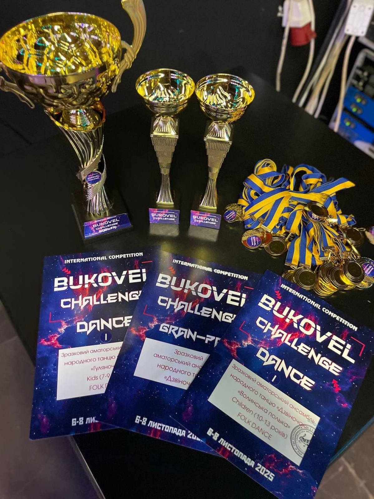 Зразковий аматорський ансамбль народного танцю “Дзвіночок” став абсолютним переможцем фестивалю Bukovel Challenge 2025, який проходив у мальовничому Буковелі. Наші юні танцівники вибороли Гран-прі та два перших місця у своїх номінаціях, продемонструвавши високу майстерність, енергію та щиру любов до українського народного танцю.
