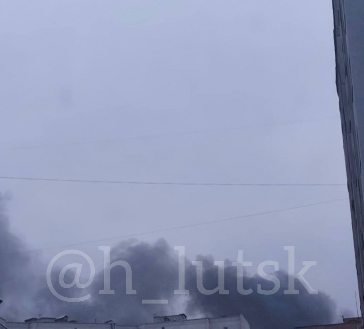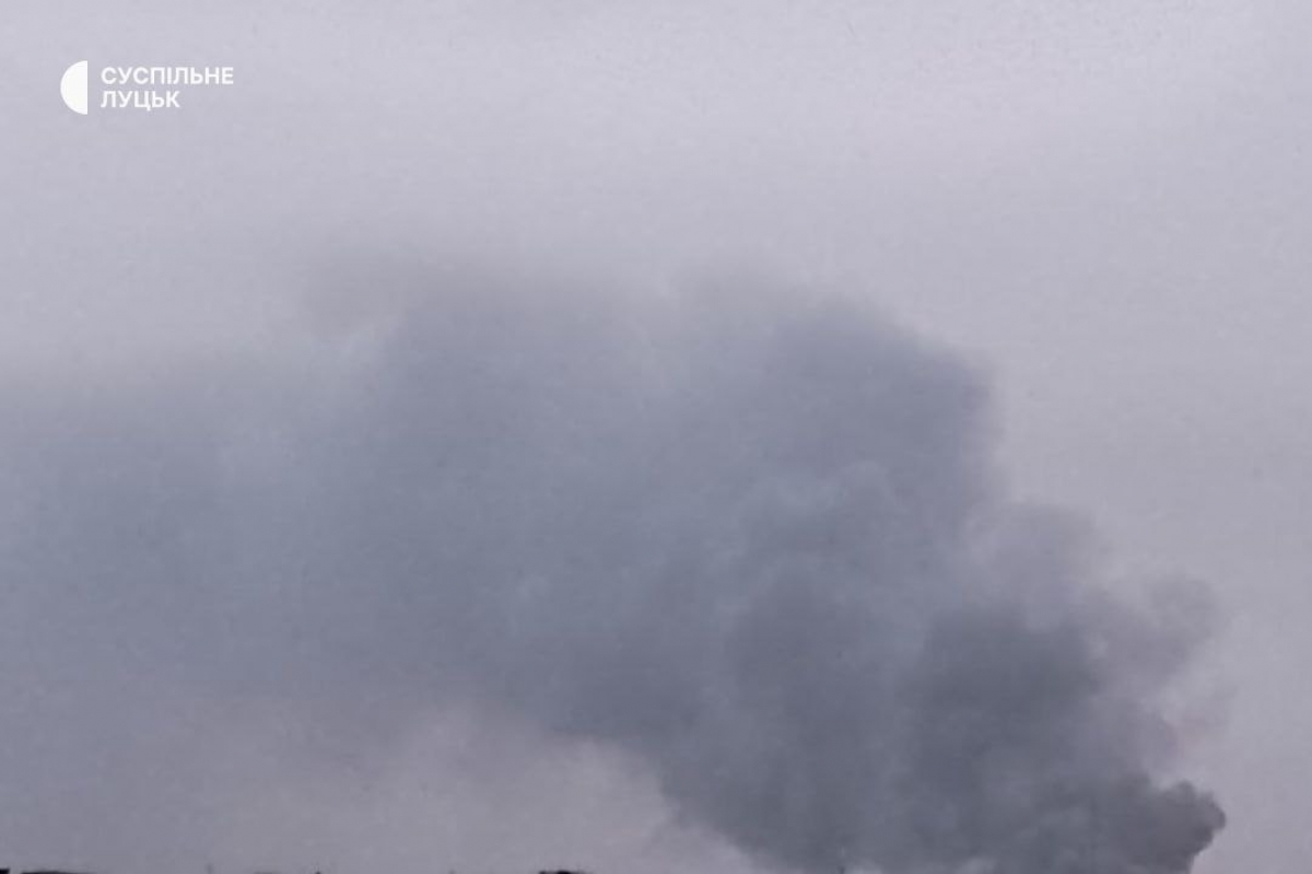 Внаслідок ворожої атаки на Луцьк, над містом піднявся стовп чорного диму.