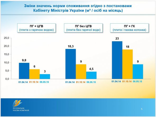 У серпні 2017 року Кабмін знизив на 25% норми використання газу домогосподарствам без лічильників.